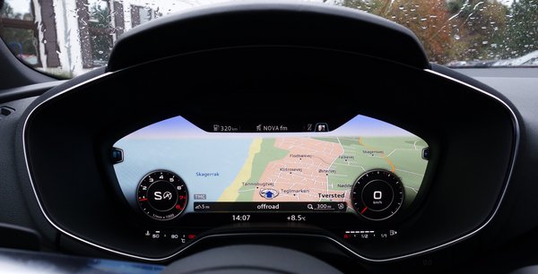 Elhessegetem az őrangyalom, már nyomom is kifelé az ESP-t, és amíg ötvennel kocogunk, még gyorsan elámulok, milyen lehengerlő élőben a TT műszerfala. Ez a letisztult, nem az iDrive-os BMW. Ki volt az az állat, aki a nekünk szegezett turbinák közepébe tette a klímagombokat? Gyanítom, ugyanaz, aki egy férfias döntéssel otrombaságnak minősítette a középre tett kijelzőt, és átköltöztette a műszercsoportba. Növessze Allah hosszúra a szakállát, egy istenadta zseni.