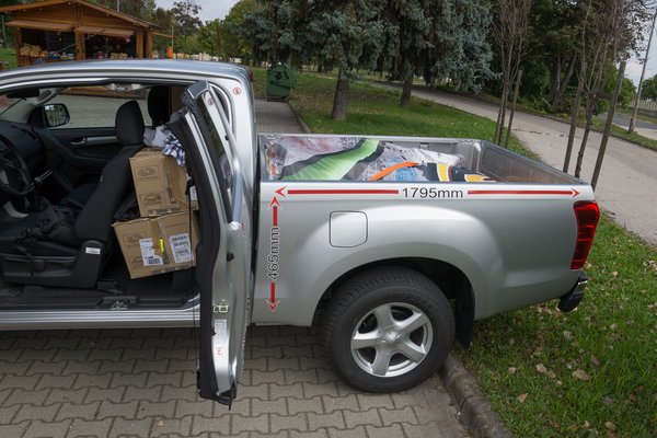 Cserébe a plató jó 20 centivel hosszabb. Jól jött, amikor a rendezvénysátrat kellett betenni, ami összehajtva éppen, hogy felfér hosszába egy normál másfél méter körüli raktérre, itt viszont könnyedén elvolt. Vagy jó példa a nálunk vendégeskedő Kőváry Barna-féle modell, aminél végképp szükségtelen a hátsó pad, viszont így a pótkeréktartó állvány/tárolódoboz mögött még rengeteg hely akadt.