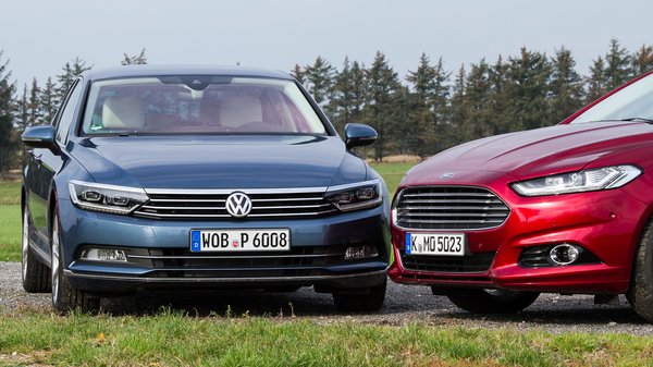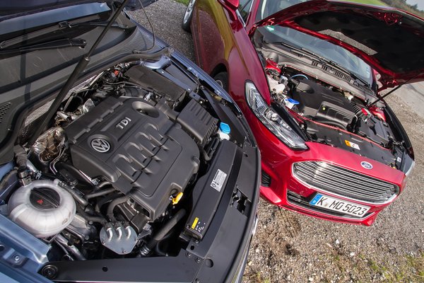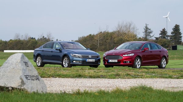 Tisztázzuk az alapokat. A Mondeót öt ajtóval és 180 lóerős, kétliteres, négyhengeres turbódízel motorral vezettük, a Passatot négy ajtóval (nincs belőle ferdehátú), 150 lóerős, kétliteres turbódízellel. A Mondeo 4,87 méter hosszú, a Passat 4,77. A Mondeo 1,91 méter széles, a Passat 1,83. A Mondeo 1,48 méter magas, a Passat 1,47. A Mondeo tengelytávja 2,85 méter, a Passaté 2,79.