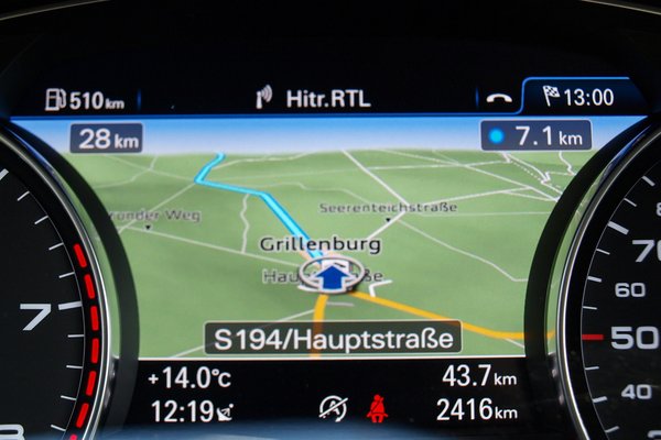 - A navigáció Google Maps alapú, és annak adatait maximálisan fel is használja. POI-pontok végtelen sorából válogathatunk, friss, aktuális forgalmi információkhoz juthatunk, amelyet a beépített, LTE-képes (!!!) mobileszköz rántja le, hogy megjelenjen ízlés szerint a középkonzol tetején, vagy a sebesség- és fordulatszámmérő közötti LCD-n.