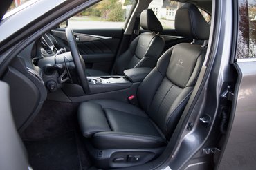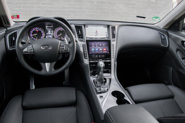 Rendes prémiumtermék, faltól-falig kibőrözve, bunkerszerű hangulattal, tele az összes sávelhagyásholltérfigyelő-asszisztáló-vészfékező-kamerázó-radarozó ancúggal, amit ma a luxusspricnikből drága termékeire tud fröccsenteni az autóipar. Az általános full-fullos felszerelésre az Infiniti még rá is tett – itt egy 8-as és egy 7-es kijelző van a középkonzolban, egyik a gomboknak, másik a navinak, rádióskálának, tolatókamerának. Lényeg, hogy a kezelőszervek maradjanak, akármi is fut a másik egérmozin.