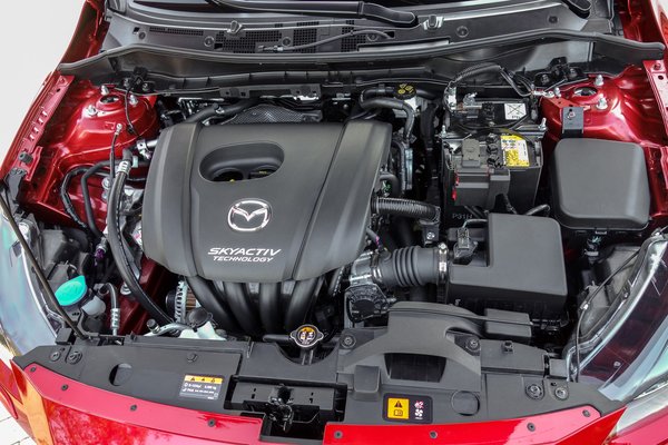 Még érdekesebb a dízel, amely teljesen új fejlesztés. Ennek nincs változó szelepállítása hidegindításhoz, mint a 2,2-es Skactiv-D-nek, sem két turbója. A töltőlevegő-hűtője sem levegős, hanem a hűtővizet cirkuláltatják a szívócsőben, mert a Mazda 2-ben nagyobb szükség volt a helyre, mint az extra nagy mennyiségű, motorba áramló levegő hűtésére.