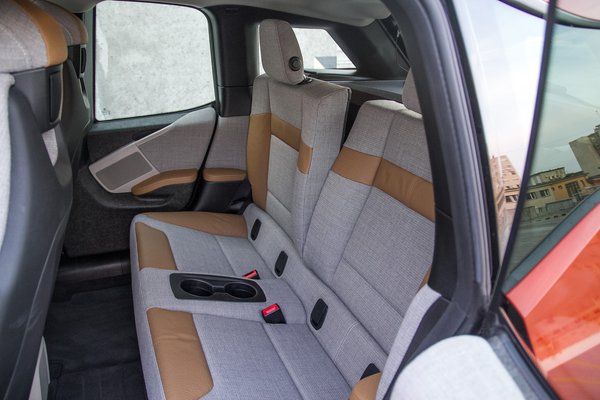 Az oldalnézet, ami leginkább egy elleni készülő tehénre emlékeztet, nem véletlenül olyan farnehéz: a hátsó kerekek között van a villanymotor, és a hatótáv-növelős változatokban még a robogómotor-generátor egység is. Így aztán csak egy fél hátsó ajtónak maradt hely, amit bőkezűen üvegeztek, de csak mint egy katedrálist: az ablakok sehogyan sem nyithatók. A két személynek jóváhagyott hátsó pad amúgy sem ajánlatos klausztrofóbiásoknak, kiszállni ugyanis csak akkor lehet, ha az első ajtó nyitva van – ez a szekrényajtós, oszlop nélküli megoldás kellemetlen mellékhatása.