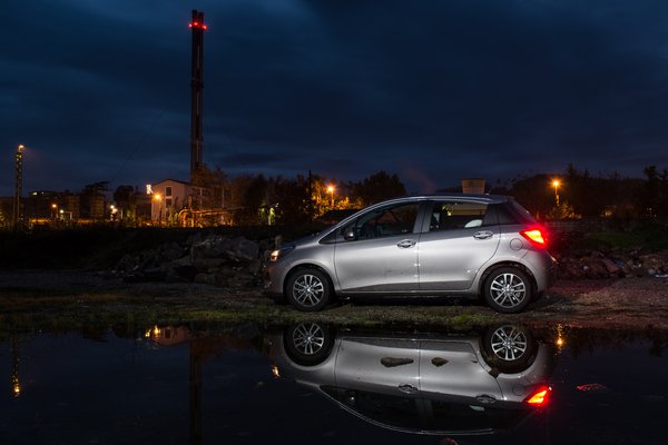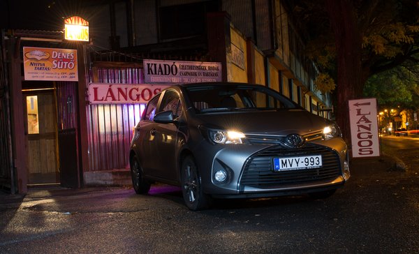Eleinte csak a fogyasztását figyelgettem. Mivel szinte frissiben ültem át az új, downsizingolt Corsából, érdekelt, életszerű körülmények között mi a különbség. A Corsa 115 lovas kisturbója egyértelműen jobban ment, viszont határeset, hogy 6,5 literrel el tudok-e vele autózni. A Yaris épp az ellenkező oldalról támadja a 6,5 litert: nehéz többet belenyomni. Mivel nem volt nagy kerülő, nyomtam vele éjszaka egy jó kis dobogókői szerpentint, Csobánka után nullázva az átlagfogyasztást. Attól kezdve lehetőség szerint padlógázon verettem a hegytetőig, és a tempó miatt nem is mertem lenézni a műszerre. Már mindenféle vad számokat vizionáltam, de a tetőn megállva 11 litert mutatott a kvarcóra. Lefelé már belebotlottam egy Sharanba, meg egy csapat őzbe, egyébként is ugye lejtő, úgyhogy mire leértem az északi hegyoldal tövébe, már 7,5 volt, átlagban.