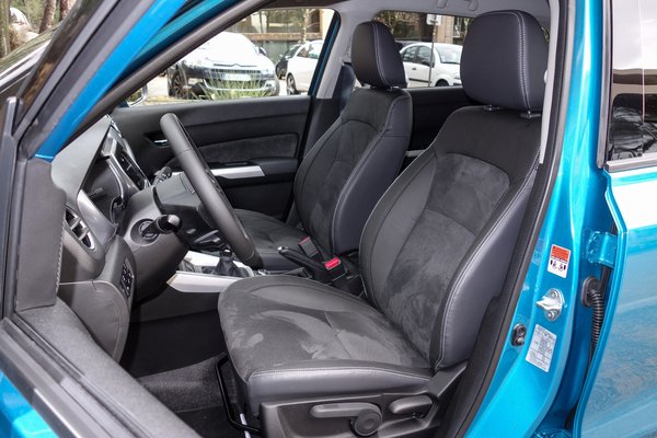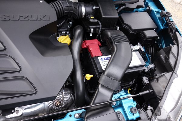 Modernség, az van minden mennyiségben. A Suzuki gyártástörténetének első adag ledes fényszórója (maguk az egységek is bitang jól néznek ki), radaros tempomat, ugyanezt a radart használó, ráfutásos balesetre figyelmeztető, nagy baj esetén automatikusan fékező lassítórendszer, tolatókamera, egy jól használható központi vezérlőrendszer, finoman lehelő klímaberendezés, kulcsnélküli nyitás, indítás, egy kellően gyorsan működő (bár véletlen lefullasztás után nehezen magára találó) start/stop rendszer, választható színű műanyagbetétek a karosszérián, kontrasztos fényezésű tető, hét légzsák – lehet itt miből választani.