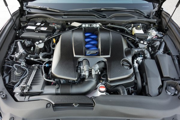 Persze, milyen is lenne. Benne van az a V8-as, ötliteres szívó benzinmotor, amit már az IS szedán sportváltozatából, az IS F-ből ismerhetünk. Ebben a kupéban az a V8-as most 477 lóerőt tud, ráadásul 7100-as fordulaton. Persze, csak a blokk azonos, mert új a hengerfej, a teljes vezérlés, a hajtórudak, a dugattyúk, a forgattyústengely... Ízlelgessük kicsit a számot – 7100. Persze, egy négyhengeres Honda-motortól nem valami sziporkázó fordulat lenne, de azok csak négyhengeresek. A Ferrarik is lazán pörögnek ennyit – de ez itt egy Lexus, hohó! Ritka élmény V8-ast ennyire üvegig forgatni, csoda hangok jönnek belőle olyankor.
