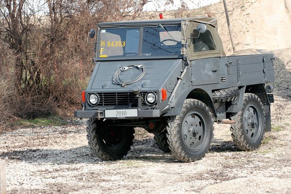 Universalmotorgerät – rövidítve UniMoG. Az első változatot 1948-ban egy frankfurti mezőgazdasági kiállításon mutatták be, s azonnal 150 megrendelést vettek fel a 11 230 márkás járműre. A bizalom nem volt megalapozatlan, az összkerékhajtású kocsi ugyanis sokkal többet tudott az első számú konkurenseinek tekinthető traktoroknál: elöl–hátul differenciálzárat kapott, mind a négy kerekén volt fék, teherautóból származó váza jól bírta a gödrös utak igénybevételeit, s kezdettől fogva rugózott volt a felfüggesztése.