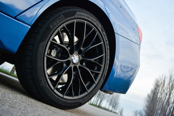 A motor mellett a színválasztáson és az extralistán is érződik, hogy ez nem egy kommersz importőri tesztautó. A könnyen eladható divatbarnánál vagy egérszürkénél sokkal vagányabb a csak M sportcsomaggal (lökhárítók, küszöb, futómű, ülések, pedálok, stb.) együtt elérhető Estoril-kék fényezés. A szín már önmagában is kiemeli az utcaképből, de fokozzák a hatást a gyári M Performance kiegészítők, mint a 18 collos matt fekete felnik, a karbon hátsó szárny és tükörborítás. Ha a gyári sötétítés nem lenne elég, a hátsó utasok rolóval is körbe vehetik magukat. Az adaptív kanyar-xenon és a távolsági fényszóró-asszisztens hasznos opció. Automatára állítva a világítást a fénycsóva kiterjedése alkalmazkodik a sebességhez és az út vonalvezetéséhez. Az előző E90-es szériához képest érezhetően kiforrottabb, szembeforgalom esetén időben vált vissza tompítottra. Viszont az útra merőlegesen elhelyezkedő járműveket szembe-fény hiányában nem tudja érzékelni, azok sofőrjeinek simán kiégeti a retináját.