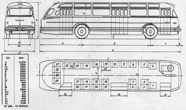 A Fővárosi Autóbuszüzem (FAÜ) számára próba céljára átadott prototípus – amely a FAÜ-nél a „Próbakocsi 456”, majd a GF-100 rendszámot kapta – 1955 elején készült el. A kezdeti műszaki problémák kiküszöbölése után még az év júliusában próbajáratokat teljesített a 12-es vonalon, és forgalomba állt az 5-ös, 7-es és 45-ös viszonylaton is, majd szeptemberben állt a FAÜ állományába. Az impozáns külsejű, 11,4 m hosszú, 5,5 m tengelytávú önhordó karosszériát három, levegőműködtetésű harmonikaajtóval látták el. Ezek elöl és hátul három–három, középen négy szárnyrészből álltak. Ez az elrendezés az első és hátsó keskeny ajtón egy–egy utas leszállását, a középső, széles ajtón két utas egyidejű felszállását tette lehetővé.