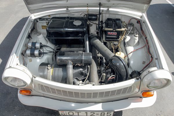 A hatvoltos Trabantok indításkor jellegzetes lomha, surrogó hangja olyan, akár egy dinastarteré, mégis összetéveszthetetlen. Jól beállított gyújtással nem is kell sokáig tekerni, hogy életre keljen a kétütemű, kéthengeres motor. A szívató lassú visszatolásával oszladozni kezd az autó körül kialakult füstfelhő, fellélegzik a motor, amit intenzívebb, egyenletesen pattogó hanggal jelez.