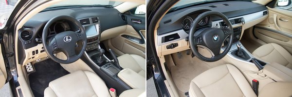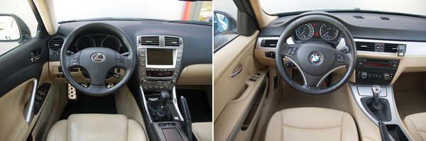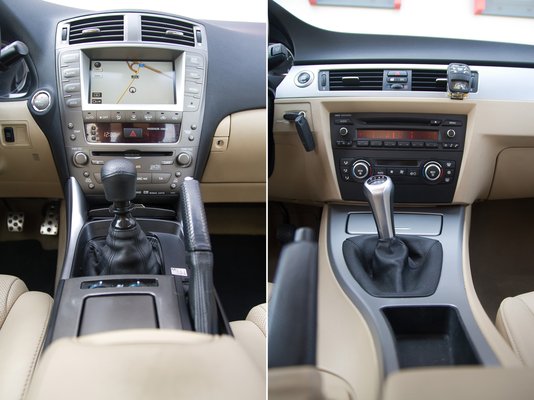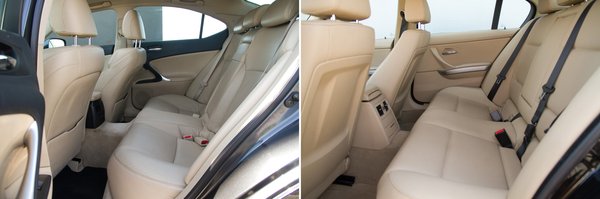 Azt mindenképpen illik még megemlíteni - és nem csak margóra -, hogy az E90-ben több a hely mindenütt. Elöl még csak-csak elmegy az összehasonlítás (bár az IS sokkal inkább ránk borul), de hátul már nyilvánvalóan több hely jut a térdeknek, mint az IS-ben, ráadásul a tetőkeret sincs olyan közel. Ugyanez érvényes a csomagtartóra is: a BMW-é nagyobb, ráadásul a hátsó ülések támlái dönhetőek, míg az IS-ben érthetetlenül fixek.