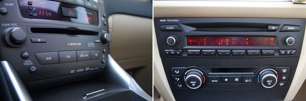 Egyébként meg kell hagyni, az érzékeny vajszínű BMW-bőr jól átvészelte az elmúlt nyolc évet, és az apró sérülések fölött nagyvonalúan szemet hunyva még mindig gusztusos. Nincsenek széthulló műanyagok, lötyögő gombok, funkcionálisan minden teszi a dolgát, ha nem számítjuk a BMW Professional pontmátrixos kijelzőjének részleges vakulását funkcionális hibának. A beltér sokkal gyengébb benyomását annak is köszönheti a BMW, hogy a Lexusból átülve minden tenyeres-talpasnak tűnik: színes TFT helyett narancssárga pixelek, memóriás ülések helyett plasztik kallantyúk, bézs helyett fekete övek a homokszínű ülésekhez.
