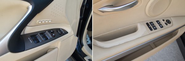 Persze, ott van a termetes felszereltségbeli különbség a két autó között, de ha ezt levonjuk, a 220d finoman kipattintható ajtózsebei, a fejedelmi első fotelek, a tekerenytűvel nyitható tető és úgy eleve minden megoldás óhatatlanul arra vezeti az ember gondolatait, hogy a Lexus tervezésénél apait-anyait beleadtak, míg a 3-as csak a kis BMW volt, aminek nem volt szabad az 5-ös fejére nőnie. Különben meg ez a 320d nem számít rosszul felszereltnek, sőt, ennél sokkal fapadosabb E90-esek adják a kínálat húsát. És ne feledjük, most, 2015-ben ugyanannyiért lehet elhozni a két autót.