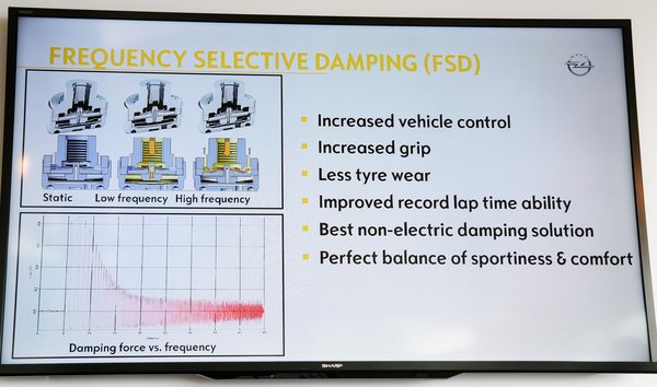 A lengéscsillapító speciális szelepei a frekvencia függvényében változtatják a csillapítást, ettől állítólag a jobb a kompromisszum a kis és a nagy egyenetlenségeken haladva – ezt hívják ők FDS-nek (Frequency Selective Damping – frekvenciafüggő csillapításnak). Ahhoz képest, hogy nincs semmi elektronika, hanem a szelepekkel trükköztek a Koni fejlesztői, tényleg nagyon jó, mindig nagyon jó kapcsolatot ápol az úttal a négy kerék, és nem lobog felette a kaszni. De ettől függetlenül a fekvőrendőrök nagyon tudnak fájni az OPC-vel, a csatolt lengőkaros hátsó futómű torziós rúdja valószínűleg brutálisan merev, viszont becsületére legyen mondva, nincs is alattomos keresztbe állási hajlama a hátsó futóműnek. A Performance csomaghoz más ESP jár: ha simán kikapcsoljuk, visszakapcsol, ha gáz (=stabilitásvesztés) van, de a gomb 5 másodperces masszírozása teljesen kiiktatja az elektronikus stabilizálást.