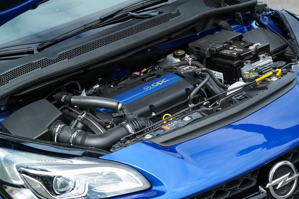 Először azt hittem, hogy a motor már az új 1,6-os turbó, de amikor megláttam, nyilvánvalóvá vált, hogy nem: a régi Corsa OPC-blokkra épül, de a teljes szívóoldalt újratervezték, nagyobb az intercooler, újak az injektorok, a motorvezérlés és a szoftver, ami rajta fut. A 207 lóerő 15-tel több, mint korábban volt, igaz, a Nürburgring Edition nevű limitált változat 210 lovas volt már 2012-ben. A motort Szentgotthárdon gyártják, igaz, a régi gyártósoron, és Eisenachban, a néhai Wartburg gyárban szerelik az OPC-k orrába.