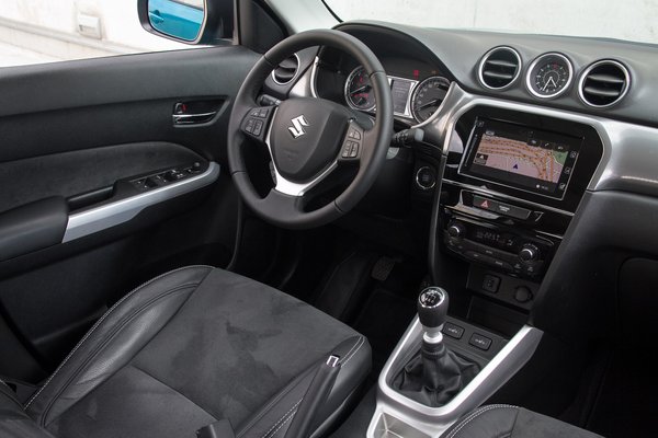 Pedig az autó nem rossz, sőt. A Suzuki persze sosem a csúcsokat ostromolja, hanem az átlagos technikát próbálja becsomagolni kellemesen, ami hol sikerül, hol nem. A Vitara esetében ez alapvetően összejött, pedig semmi különöset nem csináltak: van egy standard SUV-forma, ami kicsit a Grand Vitarát idézi, megbolondítva pár optikai trükkel. Jól érzi a Suzuki, nem árulhat minden cég Nissan Juke-jellegű, idétlen formájú kocsikat, pláne nem a Suzuki. Ez így korrekt: négy kerék, szögletes lámpa, egyszerű vonalak. Viszont a külső részleteket egész klasszul kidolgozták, az egyetlen, ami fura rajta, a teljesen sík plecsnivé lapított Suzuki-embléma a kocsi orrán. De ez legyen a legnagyobb baj.