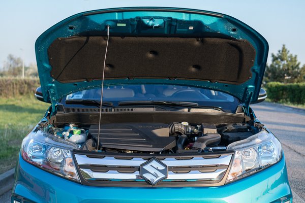 Az 1,6 literes dízelmotor a Fiattól jön, és az olaszok eléggé eltalálták. Kár, hogy olyan nem létező személyautókban lehet csak megvenni, mint mondjuk a Fiat Bravo, amit a legnagyobb meglepetésemre mind a mai napig gyártanak. Évi 4000 (négyezer, nem elírás) példányban, ennél kicsivel több Ferrari készül. Szóval a Vitara jó reklám lehetne az olasz dízelnek, arról pedig nem tehetnek a fiatosok, hogy a Suzuki kihagyott annyi hangszigetelést a Vitarából, amennyit csak lehetett. Így sem vészes, de gyorsításkor rútul szól, ám ha belegondolok, egy dízel Opel Mokka sem különb. Egyenletes haladáskor a fájdalomköszöb alá csitul a hangja, 100 fölött meg úgy felerősödnek az egyéb zajok (szél, futómű), hogy ott már labdába se tud rúgni a motor.