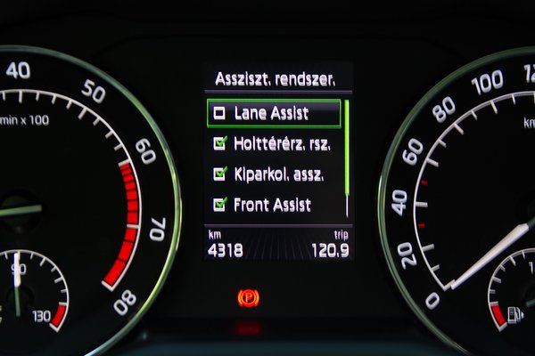 Jó, jó, de akkor hol a csapda? A felszereltségben? És nem. Erre tippeltünk volna, de nem. A Superb egyre inkább kilép a szegény rokon státuszából, hiszen – bár eget rengető újdonságot nem hoz – de megkapja az MQB-hez járó összes, modern komfort- és biztonsági elektronikát. Elsősorban az adaptív és aktív fényszórókat, melyek ugyanúgy képesek kimaszkolni reflektorfényünkből a szembejövőt, mint a nagy Audikban és természetesen vetített képüket is a menetkörülményekhez igazítják. De itt van minden: alapáras az XDS+ elektronikus önzáró differenciálmű, a ráfutásgátlóval kombinált vészfék-asszisztens és az ESC valamint a hét (kilencig bővíthető) légzsák-hadsereg. De ugyanúgy kérhetjük az adaptív, radaros tempomatot (amely akár állóra fékezésből is elindul, ha kell), az ütközésfelkészítő-rendszert, holttérfigyelőt, hátsó keresztforgalom-szenzort, lábbal kalimpálós csomagtérnyitást (alapból már elektromos), táblafelismerőt, sávtartó-automatikát, parkautomatát egyszóval mindent, amit ebben a szegmensben (közép ill. felső közép) a VW adhat.