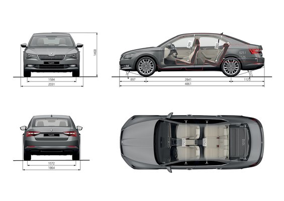 Mindezt úgy, hogy az új Superb akkora, mint egy dunai uszály. Elődjéhez képest csaknem három centivel (28 mm) hosszabb (4861 mm), majdnem öttel (47 mm) szélesebb (1861 mm) és kerek nyolc centivel nagyobb a tengelytávja, amely pedig eddig sem volt kicsi. A mostani 2841 milliméter már szinte túlzásnak tűnhet, mert _nagyon_ sok.
