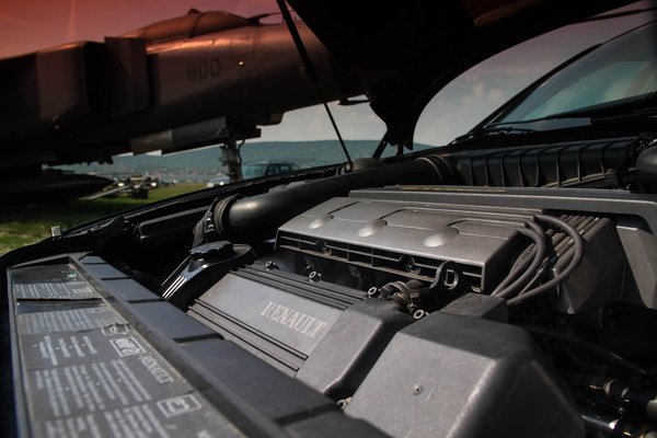 A Peugeot-Renault-Volvo (innen a PRV rövidítés) alapból 167 lóerős volt akkoriban, 12 szeleppel, erre akasztották oldalanként az egy-egy turbót. Bár a motor zokszó nélkül nyomott le 280 lóerőt is, a Renault-nak nem volt váltója, ami ennyit és a 400 newtonmétert elbírta volna. Ezért végül 268 lóerő és 365 Nm lett a kompromisszum. Ezek után kitalálhatják, vajon melyik az a részegysége a kocsinak, amelyik gyakran megy tönkre, és szinte beszerezhetetlen?