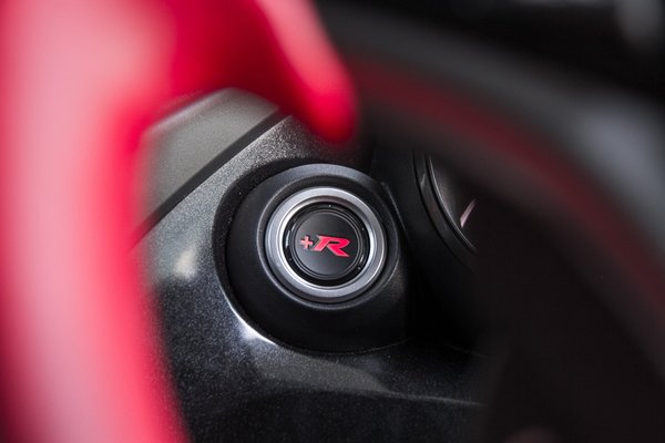 Ahogy a motor a kemény rúgást kívánja, úgy a futómű is akkor mutatja a jobbik oldalát, ha a 235/35ZR19-es Continentalok tapadáshatárát feszegetjük. A pozsonyi belvárosi forgalomban csak egy rázós, időnként keményen dörömbölő, fülünket teledörmögő vacak a Type R, képtelen áthangolni magát civilizált módba, hiába van benne az üzemmódváltó +R gomb. Kicsit lágyabb a futómű, lustább a gázpedál, amíg nem nyomjuk meg, de egyértelműen érezni, hogy nem a +R az okosítás, hanem a lakossági mód a butítás. Fölösleges időtöltés +R nélkül menni, se nem halkabb, se nem kényelmesebb úgy az autó, pedig ez a két dolog az, ami próbára teheti az alacsonyabb ingerküszöbű sofőröket. Ebben is szembemegy a Type R a trendekkel, ennyire faragatlan tuskót ma kevesen mernek odadobni a Facebook-generációnak. Mondjuk tény, hogy a gomb viszont nekik van.