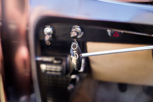 Minden kapcsolón, bajuszkaron fura piktogramok virítanak – hát persze, 1963-ban még jellemzően jelöletlenek voltak az autókban a kezelőszervek, vagy ha mégis muszáj volt elmesélni a funkcióikat, hát feliratozták őket a gyártó anyanyelvén. Ezek a korai képi hieroglifák viszont értelmezhetetlenek.