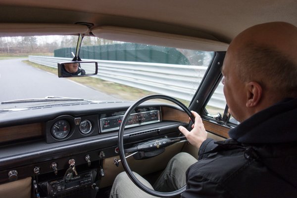 Kiérve a pályára, a legszerényebb modernek is szinte elszikráznak mellettünk, én fürdök az érzésben, hogy egy komótosabb és talán boldogabb, de mindenképpen megnyugtatóbb világot képviselünk éppen. Búg a motor, nem kellemetlenül, de azért el tudom képzelni, mennyivel hangulatosabb lehet ez az autó a 3500-as, V8-as dorombolásával színesítve.