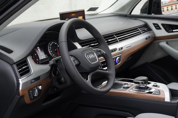 Bent sem ért sokk, ugyanaz a világ fogad, mint egy aktuális A6-osban, ugyanolyan csodálatos bőr, még fantasztikusabb fa, és az elhagyhatatlan alumínium kombójából szerelték össze ezt is. Más kérdés, hogy ez a tízévesen kimúlt, első generációs Q7-es beléhez képest hiperűrugrás, de a mai Audikhoz képest nem éreztem olyan forradalminak fejlődést, mint amit mondjuk nemrégiben a Volvo XC90 előadott. De ez biztosan szándékos.