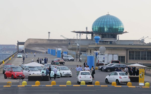 Értik? Hat emelet magasan hajtották a friss autókat, ami nyilván teljesen felesleges, hiszen lett volna hely tesztpályának, de a büszke olaszok templomot emeltek az autógyártásuknak. Az 1982-es bezárásig több mint nyolcvan modell készült itt, ma pedig egy hotel és egy pláza üzemel benne. Miután véget ért a sajtótájékoztató, egy halom új 500-assal hajthattunk fel a tetőre, közben jöttem rá, hogy még a födém is elképesztő látvány, pókhálószerűen futó betongerendákból áll. Teljes kört persze nem tehettünk meg, de ahogy lement a nap, és bevilágította a flottát meg a kanyarokat, az bizony igéző látvány volt, szerintem szándékosan csinálták. Van ám persze popkulturális vonatkozása is, az eredeti, 1969-es Olasz melóban a másik népautó-legendát, a Minit hajtották itt egy jelenetben.