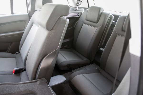 Viszont az ülésekkel lehet bűvészkedni. Aki egy 4,5 méteres autótól hét teljes értékű ülőhelyet kérne számon, gondolja újra a kérdést. A többiek be fogják látni, már az is tisztességes dolog, hogy ha nagyon muszáj, leghátra is be lehet nyomorítani két szépen kifejlett apatestet, igaz, ilyenkor középen is üléstáblába nyomódik a térd. A reális szitu inkább az öt felnőtt plusz két gyerek, ami még élhető, vagy még inkább a két felnőtt, két-három gyerek és egy rahedli csomag leghátul. Ebben penge a Zafira, könnyen tologatható a középső pad, és percek alatt ki-be lehet hajtogatni a leghátsó székeket is. Valószínűleg az autóval ismerkedve itt éri el a család a pontot, ahonnan már nincs visszaút apa számára.