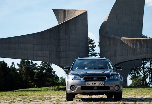 Egyébként Szabó Gábornak hívják a nyelvvizsgátlan expolgármestert, vele egyszer Tamásnak volt egy balesete, bár a vadregény-faktort csökkenti, hogy Tamás volt a hibás, ő csúszott bele hátulról. Na de hogy miért épp Szombathelyen tesztelek tizenéves Outbacket? Hát mert mire Tamás megvette, természetesen igyekezett mindent elolvasni az autóról, és egyszerre csak beugrott neki, hogy ismerős a rendszám: igen, ez volt egykor a hivatalos tesztautó. Úgyhogy írt nekünk, mi pedig két héten belül a helyszínen is termettünk. 2,8 millió forintért vette, ami már önmagában horror, ráadásul 3,6 millióról indult az autó. Ez már bőven az irracionális árkategória, de Tamás azt tapasztalta, hogy bár vannak hathengeres Outback-ek jóval olcsóbban, de azok szarok. Úgyhogy inkább ezt nézte meg, és végül sikerült megegyezni az öregúrral a már nevezett vételárban.