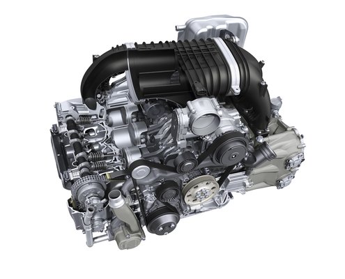 A szívó, hathengeres boxermotor hengerűrtartalma nem változott: maradt 3.8 literes. Direkt befecskendezést kapott, titán hajtórudakat, kovácsolt dugattyúkat és szárazkarteres kenést. Az új hengerfejekben nagyobbak lettek a szívó- és kipufogószelepek, átdolgozták a víz- és olajfuratokat. A dugattyúkat két olajspricni hűti alulról, a kenési rendszerbe pedig beiktattak egy félhold alakú pengékkel teli olajszeparátort, amely a magas nyomatéktartományban a főtengely által felvert olajmennyiséget csökkenti.