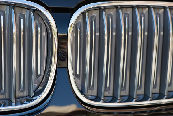 A formáját még érlelnem kell magamban. Nem mintha megütköztem volna rajta, vagy ilyesmi, épp hogy észre sem venném, ha a városban hirtelen megjelenne száz új 7-es. Nem vészes a forma, de lehetne sokkal tisztább, homogénebb, és például tudom, hogy az új BMW-formanyelv része, hogy a lámpák a hűtőrácsba folynak, de pillanatnyilag úgy látom, ez ennek az autónak egyszerűen nem áll jól. A széles krómcsík az alján is a kínai piacnak szólhat, nem nekem – a kifutó 5-ös formája továbbra is a kedvencem.