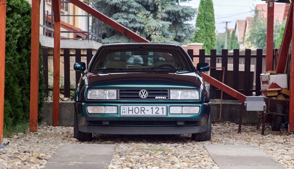 Tibi autója VR6-berkeken belül is elég ritka madár. Először akkor örültem meg, amikor láttam, hogy nem fekete, hanem ugyanolyan sötétzöld metálszínű, mint anno Audi A6-osom volt. Hogy Classic Green vagy Dragon Green-e, már meg nem mondom, de nagyon eltalált szín, az biztos. Másodjára akkor dobtam le a láncot, amikor kiderült, hogy bézs bőrbelsős. Nem tudni, ki rendelte annak idején így, de volt ízlése, az biztos. Azt azonban meg kell hagyni, hogy a Corradónak minden gyári szín jól áll (a Nugget Gelb a másik nagy kedvenc).