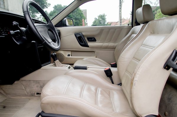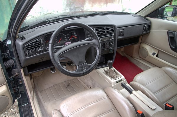 Mélyen ülünk a jól tartó ülésekben, a váltóra azonnal és természetesen rááll a kezünk, a rádiót pedig azóta sem tudták jobb helyre tervezni, mint ahol a kettes és hármas Golfban volt. Bár nem egy kifejezett sportautó, inkább egy GT, ennek ellenére az üléspozíció kifejezetten sportos és mivel német emberek tervezték, így gondoltak a nagy szórásra és akár nyújtott lábbal, akár a kormányt magunkra húzva, de minden pozícióban jól fogjuk érezni magunkat. A bőrkárpitra ráfér a renoválás, de Tibi rajta van a témán, a piros szőnyegek is csak amolyan elsődleges védelmi vonalként lettek meghagyva.