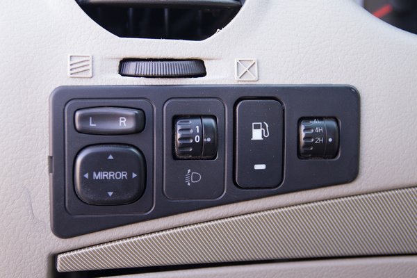 A bal kezemnél lévő konzolon bújik össze a tükörállítás, a lámpamagasság, a tanksapka és az összkerék kezelőszervei. Utóbbi kísértetiesen olyan, mint más autókon a fényerősség-állító gomb, szerencsére nem az ugyanúgy kinéző magasságállító mellé rakták, így nehéz véletlenül átkapcsolni.