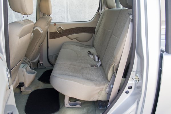 A hátsó utasok megkapták a szokásos padot, középen a manapság kihalófélben lévő kétpontos övvel és hatalmas lábtérrel. Sajnos a háttámla nem ledönthető, valamiért se a Genióban, se az egy számmal kisebb Goa pickupban nem gondoltak a Mahindránál a csomagok elpakolására. Bár alatta van hely, de onnan meg hajlamosak fékezéskor kicsúszni.