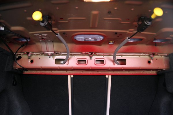 A bőr színe szép, de nagyon olcsó, érzetre és tapintásra is az Opel legsötétebb korszakának zúzott, bőrdarálékból sütött kárpitját idézi, a kormány tapintása pedig olyan szintetikus, hogy szinte feláll a szőr a karunkon. A középkonzol aljából kiemelkedő, tekerhető váltógomb szép megoldás, de a valóságban látszik, hogy csak azért van ott, mert legalább valami legyen, ami megragadja az embert. Igazából teljességgel haszontalan, de legalább lefoglalja magának teljes szélességben a helyet, ahová a leginkább pakolnánk menet közben.