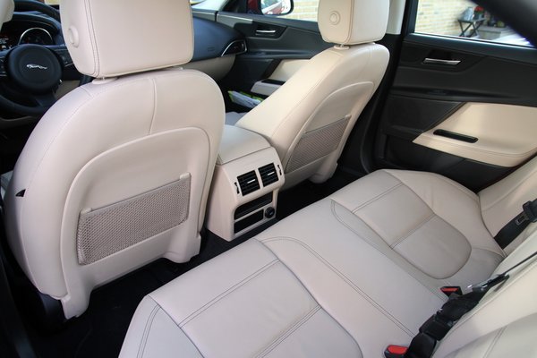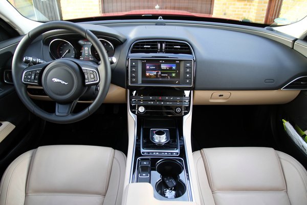 Egyértelmű öngól, pedig mennyire szerettem volna azt írni, hogy végre jött a Jaguar és csinált tényleg egy mindent vivő autót. De nem, hiszen a központi érintőképernyő körüli gombok, a felhasznált fekete plasztik, a ciki zongoralakk és a világos bőrkárpitba tetszőlegesen belehányt sötét műanyagok nagyon lehúzzák. A képernyő felbontása amúgy sem túl acélos, évekkel ezelőtt még elment volna, de most már egy Golf vagy Octavia is HD-minőségű képet ad, a Jaguar pedig nagyon nem. Ráadásul a menürendszer is furcsa, olyan Android-utánzatnak tűnik, a funkciók 90 százaléka nélkül. USB-portot sem találtam sehol, de lehet, csak nem kerestem eléggé, és a valóságban megbújik az utasülés alatt.