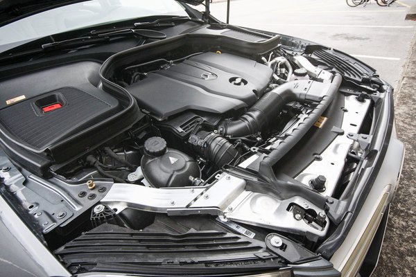 Hát, már nem kell dobbannia. Sehol a sok henger, csupán egy sokrétegű Viledába fojtott ütvefúró hangján szóló négyhengerest takar a felirat, amely még csak nem is 2,5 literes, csak egy kettőegyes, a plusz negyvenet a kettő darab turbó miatt szavazták meg neki a board meetingen (egyébként a 170 lóerős 220d is kétturbós, csak a 200d egyturbós). Oké, az a sokrétegű Vileda persze olyan vastag, hogy a GLC 250d talán a legcsendesebb SUV ebben a méretben, de ami hallatszik belőle, az nem kellemes. A négy henger ilyen sosejó dolog, csakis nagyfordulatú, hangolt kipufogós benzinesben, üvegelés környékén. Persze lassan már annak is örülnünk kell, hogy nem háromhengeres 1,2-es van az orrában.