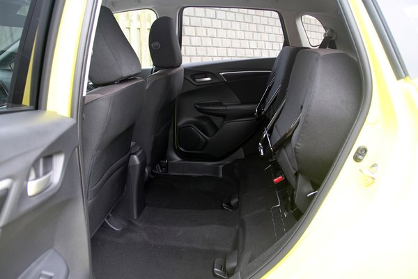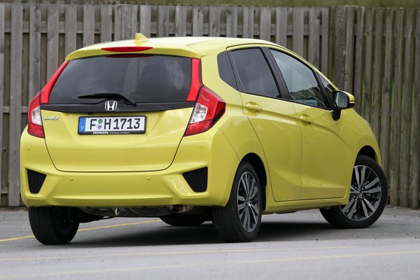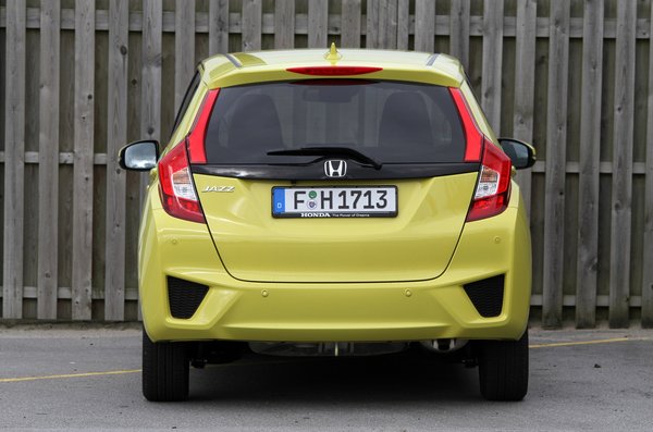 Majd hirtelen indul egy él a kerékjárat közepéből és alulról, ez sportosságot sugall, de nem tud mit kezdeni a hátsó ajtó nagy felületével, a bajt pedig tetézi, hogy nagyautósan belevasaltak egy jókora, lapos síkságot is. Ezzel elérték, hogy a hátulja optikailag szűküljön, a kerekeket ugyanakkor besüllyesztették a bódéba, a fenekét pedig visszafelé kanyarították. Ettől úgy néz ki, mint egy farkát behúzva menekülő kutya. A sajtófotók ügyesen készülnek, de a valóságban sajnos szétszórt az összkép, és az egész Jazz esetlen, már egy Fiesta mellett állva is értelmezhetetlen. Egy Mazda2 pedig olyan mellette, mint egy Aston-Martin.