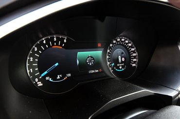 A vezető környezete eléggé high-tech: a műszeregység a Mondeóból jött át, s így javarészt LCD-s, valamennyire konfigurálható is. Egyszerű, praktikus, szép. A műszerfal középső részén is van egy másik, nyolc collos kijelző, amin a médiarendszer kommunikál, ez természetesen érintős. Alatta a rádió és a szellőzőrendszer kezelőgombjai, itt a fő dísz egy Sony felirat – ezt nem érzem túl szerencsésnek. Elnézést az érintettektől, de amikor a többi autóban Mark Levinson, Bang Olufsen, Bowers & Wilkins, Cabasse, Bose és Burmester nevek virítanak, akkor a Sony inkább a lefelét jelenti. Ettől persze még lehet jó (és egész jó is), de egy ilyen hatalmas zöldségsalátát készítő konzummárka, lássuk be, nem lehet húzónév. Mintha egy angol pubban Borsodi Sörgyár feliratú csapból mérnék a London Pride-ot.