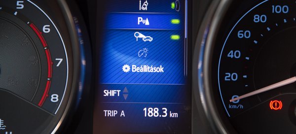Ami a segédleteket illeti, itt is van egy-két furcsaság, például a navigáció és a táblafelismerő gyakran mutat eltérő sebességkorlátozást, ráadásul a rendszer nem veszi figyelembe, hogy nálunk a kereszteződés feloldja a sebességkorlátozást. Vagyis rendesen oda kell figyelni. A parkolóradar tolatáskor a hátsó szenzorok miatt szinte hallhatatlanul pittyeg, miközben az első sikít bármire, amihez köze nincs az autónak – igaz, van tolatókamera is, de azon kívül még három tükröt is kell nézegetni. Ráadásul a hangjelzéskor nem halkítja le a zenét a Toyota, így már gyakorlatilag észlelhetetlen.