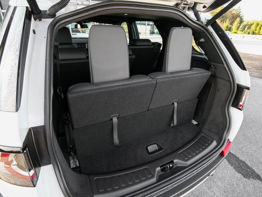 Ha nagyon egyszerűen veszem, a régi Freelanderhez, vagy akár az Evoque-hoz képest is itt a nagyobb és divatosabb karosszéria, és a hétüléses kialakítás az újdonság. Persze egy 4,6 méteres bódéban, aminek ráadásul jó hosszú orra is van, ezt a hét ülést maximum a világvége-jövendölésekkel egy lapon érdemes kezelni, maga a Land Rover is csak 5+2 ülésesnek hívja az autót. Hogy folt ne essék a Totalcar szakmai becsületén, én azért felhajtottam a padlóból a fura, fél-vasalódeszkát imitáló fejtámlájú kis székeket, s begyűrtem magam leghátra. Oké, ez itt csak dísz, nyugtáztam, hiába az öv, a külön állítható szellőzés. Kicsi gyerek ide nem fér, mert az ő méretét növeli a gyerekülés, nagyobb gyerek meg nem fér. Pont. Visszacsuktam mindent.