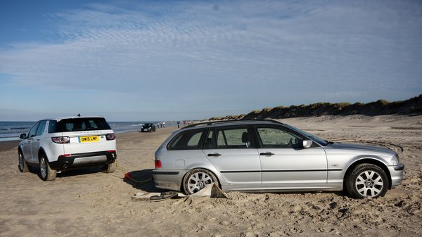 Terepen nem sokat lehet menni Dániában, de a tengerpartra azért lejutottam a kocsival. A más autók számára kínkeserves, mély homokfoltokon könnyen átcipelte a testét, itt volt alkalmam kipróbálni a négyféle, műszerfalon kapcsolható hajtás-üzemmód közül legalább a „Sand” állást. A tesztelt Disco Sport alatt változtatható csillapítású MagneRide lengéscsillapítók voltak, ezek ilyenkor puhábbra váltanak, a megcsúszás-érzékelés viszont épphogy idegesebbre. Tényleg hatékony a dolog, nemcsak azért, mert a finoman hullámzó dűnéken jobban esik így a repesztés, hanem mert például egy köhintésnyi gázadással sikerült kirántanom a homokból a tengerpart egy távoli részén megfeneklett 3-as BMW-kombit. Magam is meglepődtem, milyen könnyen ment, pedig a Bömös hasig felült a homokra és a hátsó kereke nem érte már a talajt, de még a szőnyeget sem, amit a szerencsétlen holland tulaj alája tett. Nem mondanám kimerítő terep-tesztnek, de autóm meggyőzőt villantott.