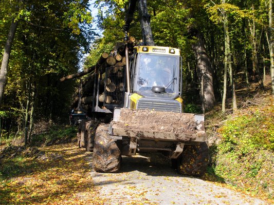 Meglepő, de az óriásgép kíméli a talajt. A fajlagos nyomás rakottan is csak egy kilogramm/négyzetcentiméter, mintha valaki rálépne a lábamra. Épp ez a kíméletes erdőgazdálkodás egyik fontos tényezője. Ez a forwarder jól tükrözi a folyamatos erdőborítással kezelt erdők fenntartását is, bonyolult, precíz, szakemberigényes üzemeltetést kíván meg. Közben persze számít a hatékonyság, a gazdaságosság is, hiszen parkerdőben vagyunk ugyan, de a költség itt sem mellékes.
