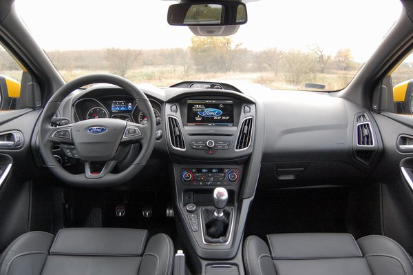 Mint családi autó, a Focus ST kombi rendben van. A multimédiás egységről eltűnt a millió nyomógomb, ellenben van jól működő érintőképernyő, a fűtéskonzol is feljebb került, mert megjeleníthető képernyőn, kezelhető is onnan. Nem mondom, hogy az egész középkonzol a világ legjobbja, van rajta pár idegesítő dolog, de ezek nagy része megszokható. A két főműszer közötti színes TFT-kijelző azonban nagyon jó, sok dolog megjeleníthető itt, van egy kombinált kijelzés mód is, amikor minden fogyasztás és távolságadat egyszerre látszik.