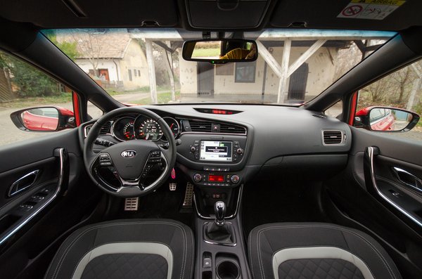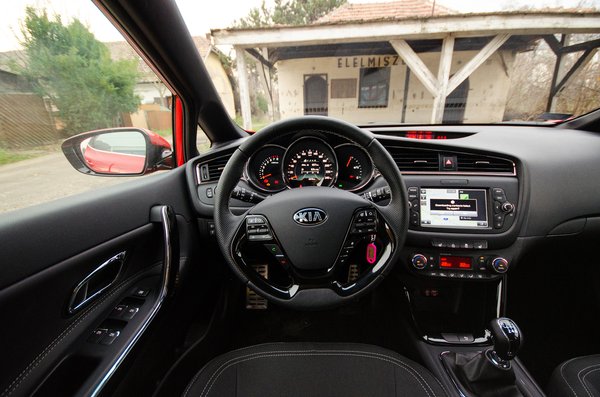 A kormányt túlszervózták, szerintem nem illik a futóműhöz; én egy kicsit keményebben szeretnék küzdeni az irányításért. Ez egy plötty futóműhöz illene, ehhez kicsit zsigulisabbra venném a rásegítést. Lehet ugyan egy gombnyomással állítani, de az kevés. A kézifék is sajnos gombnyomásra működik, ami felveti a kérdést, hogy ha már ezen spórolnak, mert ugye az elektromos kézifék soha nem a mi kényelmünket szolgálta, akkor miért nem csapnak hozzá egy átkozott emelkedőn induló asszisztenst? Plusz ugye az elektromos rögzítőféknek induláskor sebességben, gázra ki kell oldania, ezt a Ceed pedig csak előremenetben csinálja. Pedig a hátramenet is csak egy elindulás.
