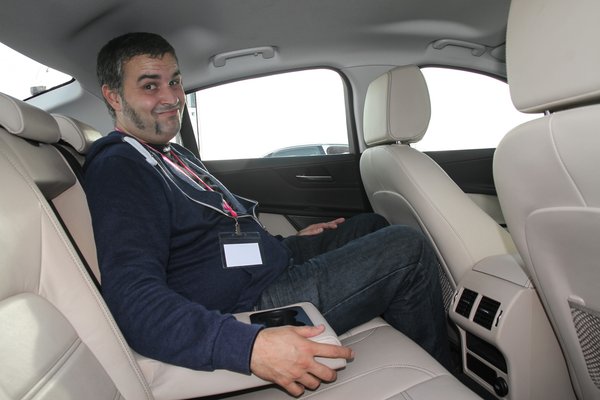 Érdekes, hogy a Jaguar valahogy szűkebb is belül, holott nagyobb a tengelytávja az Audiénál – ez nyilván a patak kontra hűtődoboz-forma miatt van így. Hiszen az A4 nem profitál az elsőkerék-hajtás adta jobb lehetőségekből, mert a padlólemeze ugyanúgy púpos, mint az XE-é, hiszen létezik belőle quattro-kivitel. Akár a fej-, akár a lábteret nézem, hátul minden irányban Ingolstadt nyer – a német épp elég tágas, a brit viszont már feszengős. És még ha nem is szűk az XE elöl, azért ott is valahogy szellősebben ül az ember az Audiban, miközben tárolóhelyből is több van.