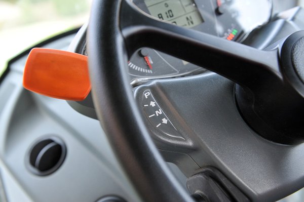 Motorindításra valahonnan lentről megszólal a gép barátságos brummogása. Ugyanekkor életre kel a kormánymű, amelynek nincs semmiféle mechanikus kapcsolata a kerekekkel, tisztán hidraulikus működésű, tehát kormányozhatatlan a traktor, ha áll a motorja. Éppen ezért nincs fix egyenes helyzete a volánnak, mindig az számít középállásnak, ahogy a motor leállításakor maradt, ezért hol így, hol úgy állnak menet közben a küllők, és nincs értelme raliversenyzők és őket utánzó ficsúrok módjára színes csíkkal megjelölni a karima közepét. Ez tehát nem bug, hanem fícsör, menet közben egyáltalán nem zavaró.